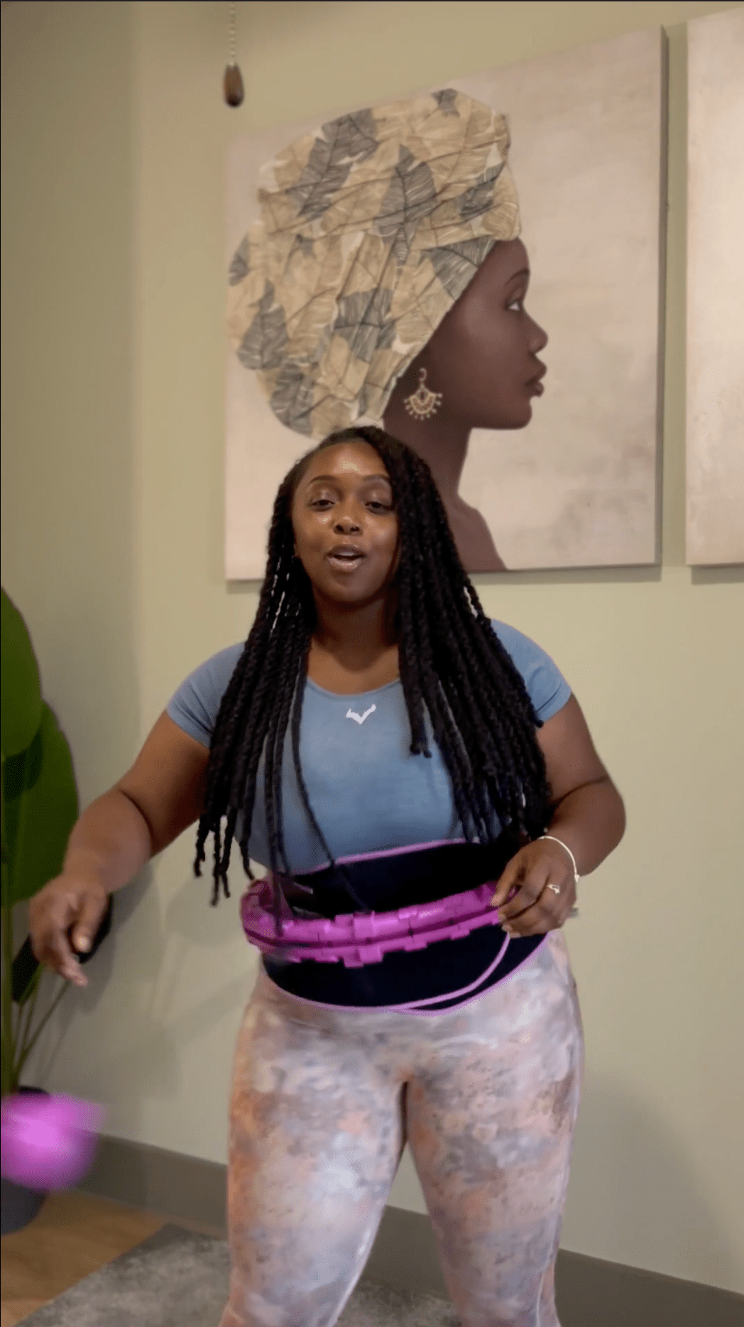 Wrap it around your midsection, adjust for a snug fit, and wear it during hooping or any physical activity.