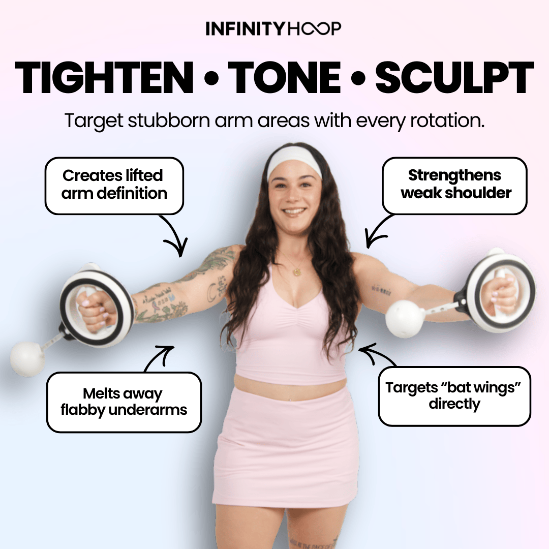 Instead of heavy reps or long workouts, the Arm Hoop keeps your muscles under constant tension. That steady resistance is what helps smooth, tighten, and reshape your arms over time.